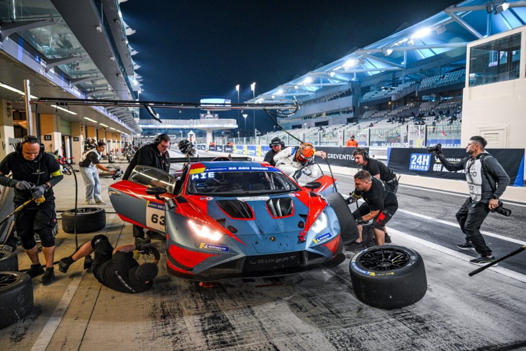 Last weekend, Leipert Motorsport competed in the CREVENTIC 24H Series 6-hour race at the Yas Marina Circuit in Abu Dhabi with the Lamborghini Huracán GT3 EVO2. In the highly competitive GT3 Pro class, the team fielded an international quartet of drivers: Stanislav Minsky (KGZ), Nikolas Stati (AUS), Brendon Leitch (NZL) and Thomas Kiefer (GER). The team’s strong position for the race weekend was evident even in the preparatory phase. They covered over 1,500 test kilometers on Thursday and Friday, using the extensive track time to optimize the car’s setup, consolidate procedures, and provide ample driving practice for all drivers.
