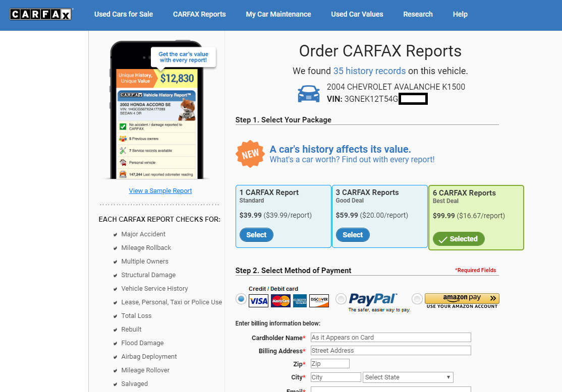 Asking the mighty Google about: VIN NUMBER LOOKUP yields a variety of web-based tools – the leader in the space being CARFAX. And for those unfamiliar with CARFAX – if you take a vehicle’s VIN and run it through the system it generates a report about the vehicle and here’s what you get: