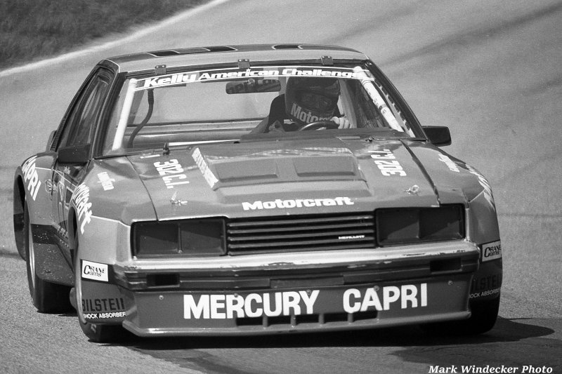 Then I kind of scrounged around getting rides in various endurance races. Then I got Ford as a sponsor in 1981 in the Kelly American Challenge series. And Ford chose to start out with a Mercury Capri. That first year that that was the first one, which is essentially a Mustang, but with a Capri body on it, I did that for two seasons.