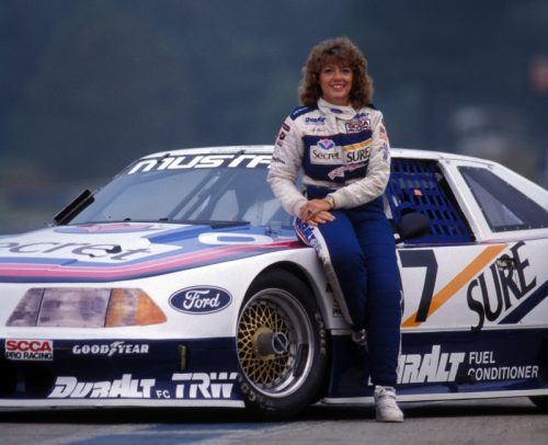 With Ford’s backing, Lyn raced in the Kelly American Challenge, TransAm, and IMSA series. Her stats speak volumes: