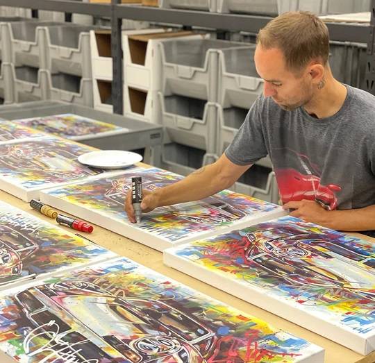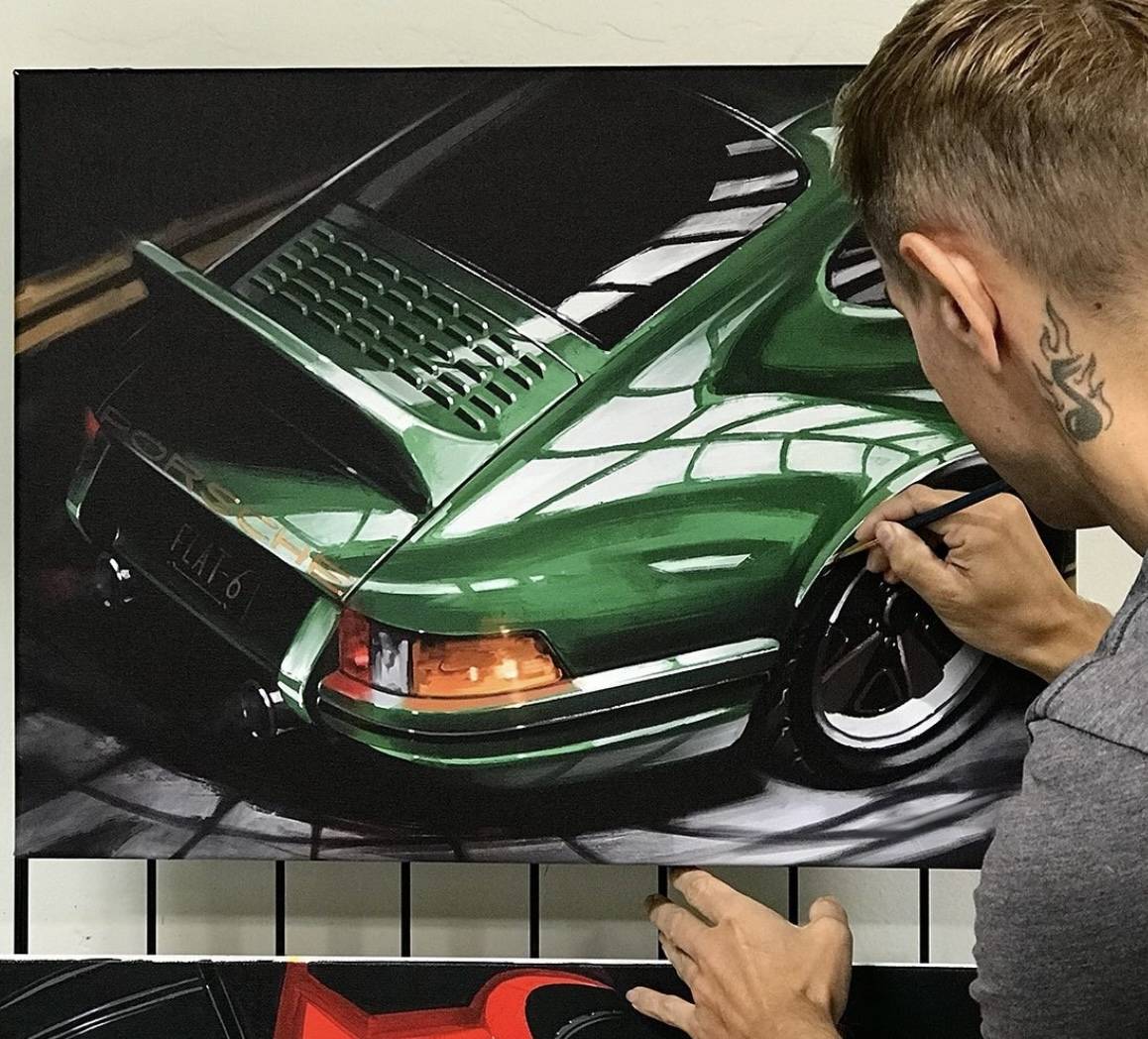 He started out as an automotive painter that specialized in custom paint and high end restoration work on classics and exotics in Rockville, Maryland. From there, he began airbrushing, doing Sharpie art, and pinstriping. Soon after, he was doing his artwork [00:01:00] nearly full time, And some of you might have heard of him.