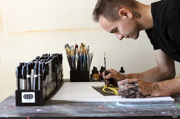 Despite getting accepted to an art school in California, Chris never attended. Instead, he credits years in the spray booth for shaping his understanding of color, lighting, and composition. His artistic evolution was fueled by trial, error, and a relentless drive to try new mediums – airbrushing, pinstriping, and eventually, Sharpie art.