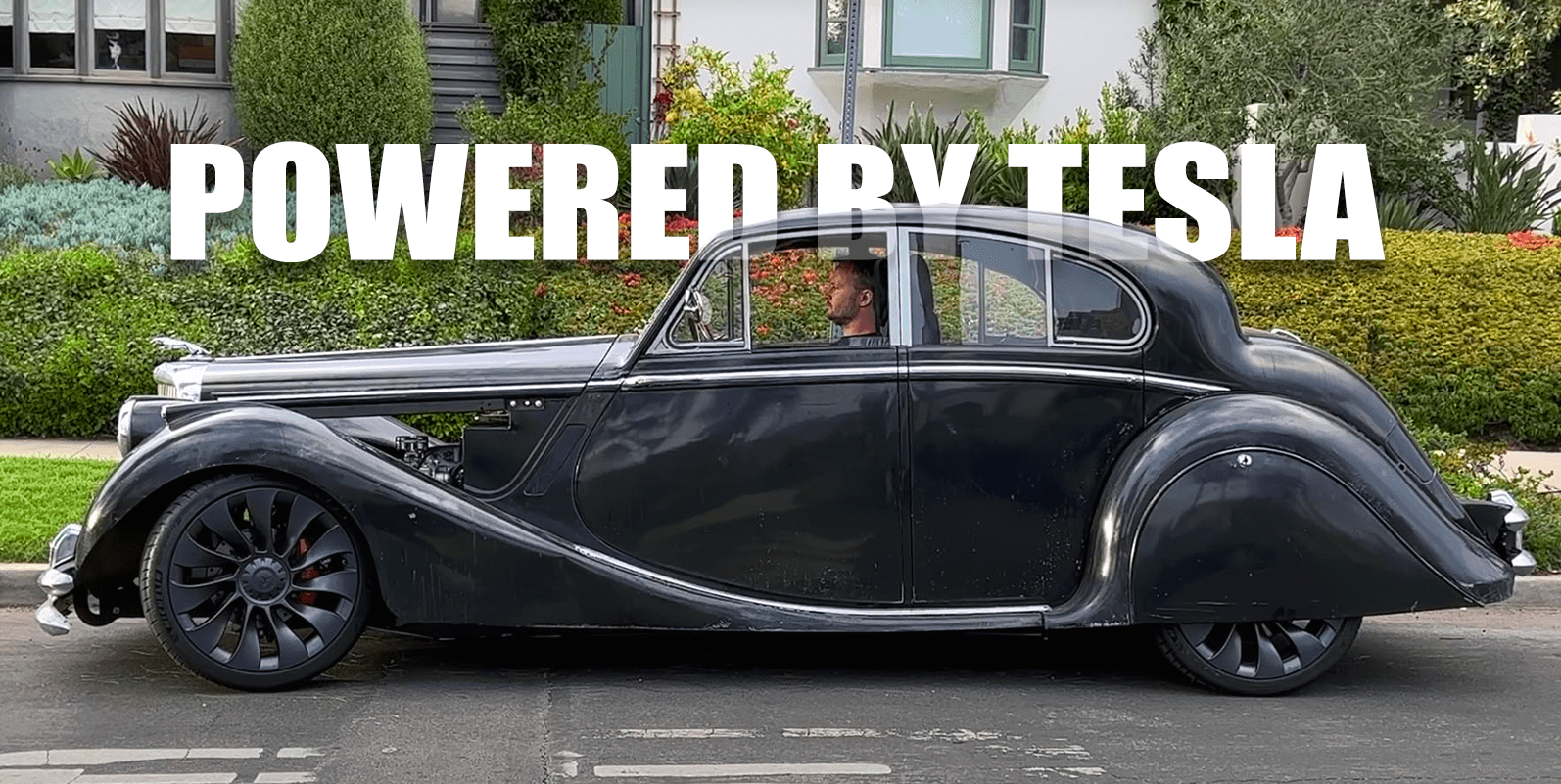 If you will, you take a 1950 Jag bar mark five and you power it by a Tesla. And I’m like, okay, well we’ve done EV swaps before, not a big deal. But the more I [01:32:00] look at this, did they graft the body onto a Tesla? Not just swap out the drive, train and retrofit into this JAG because it’s got the Tesla wheels, it’s low to the ground, it’s different suspension, all this kinda stuff.