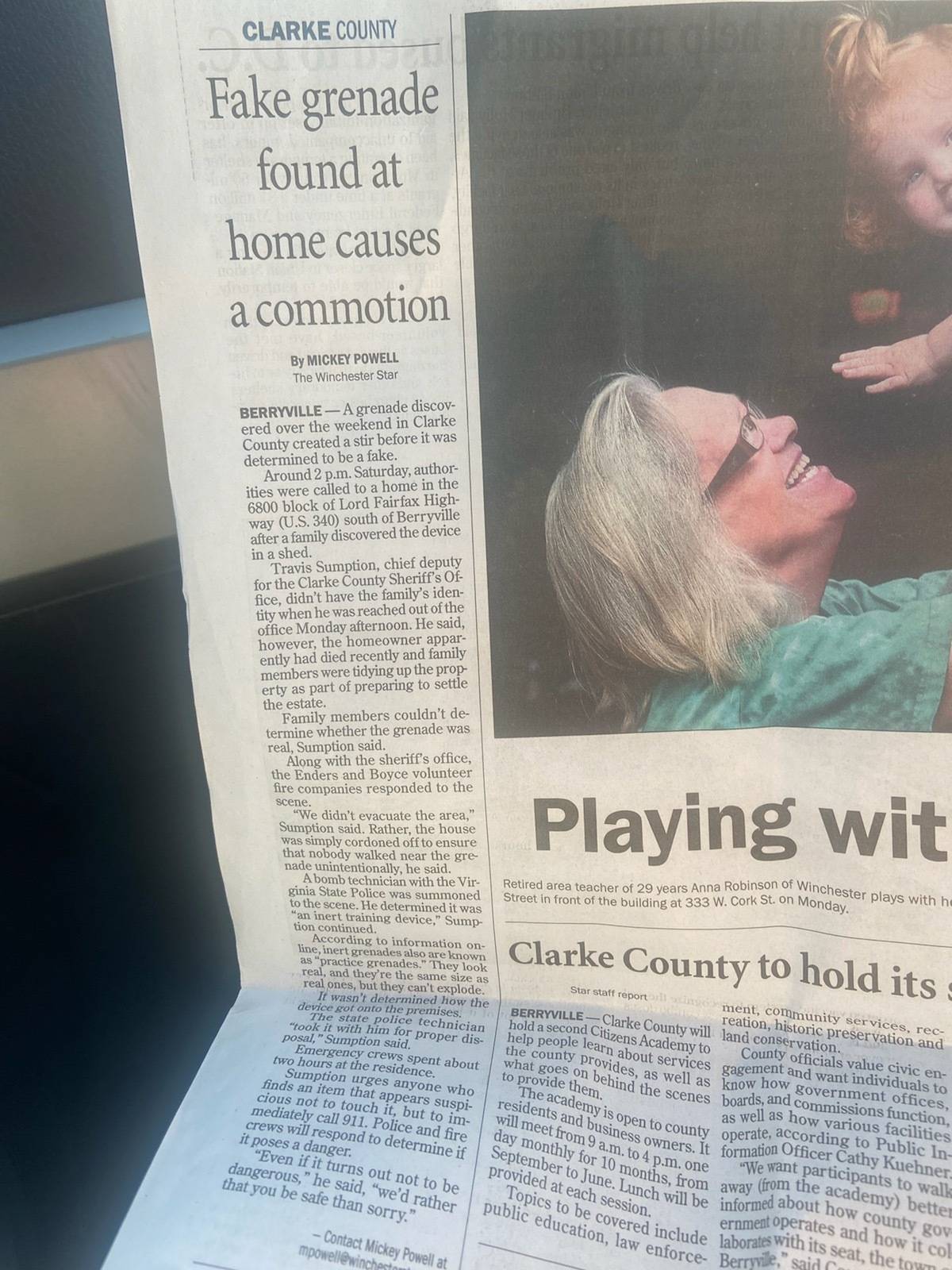 There were a couple near misses from people, but uh, luckily I think most people were unharmed in this crazy, I have my own Florida man story. It happened right here, close to home, right near Summit Point, and it stars a G T M man, one of our members who as we were going through and cataloging an estate, found a grenade.
