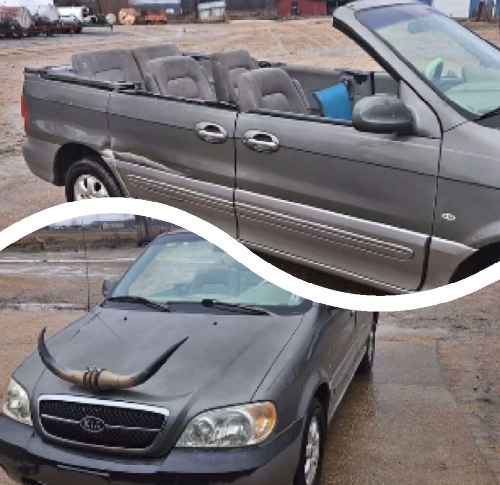 For your consideration we present the 2003 Kia Sedona GT “Cross Cabriolet!” with Special Edition hood ornament and 3rd row seating.