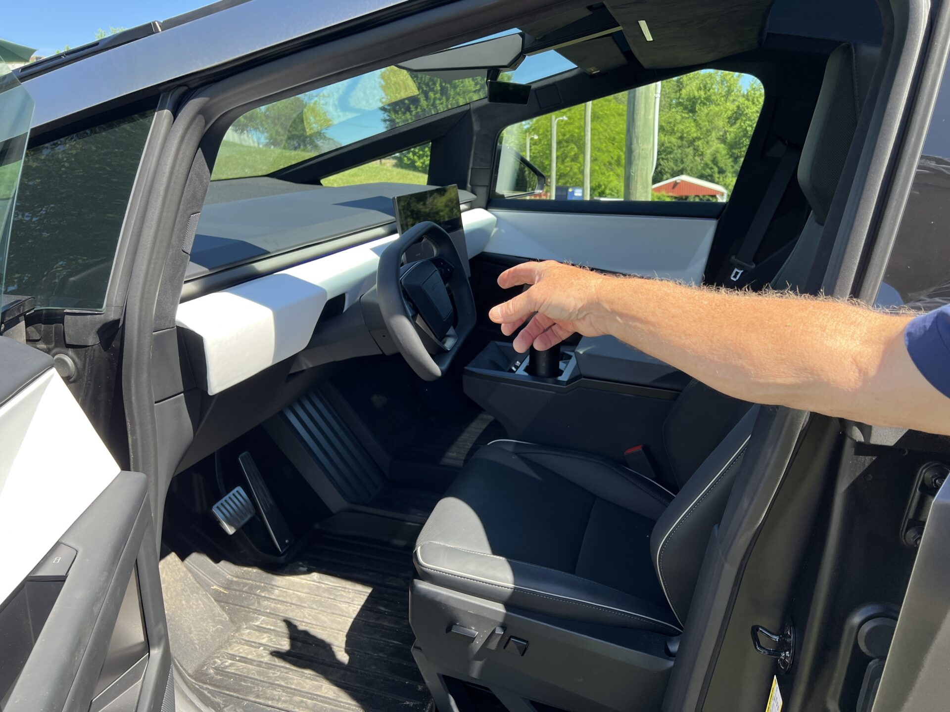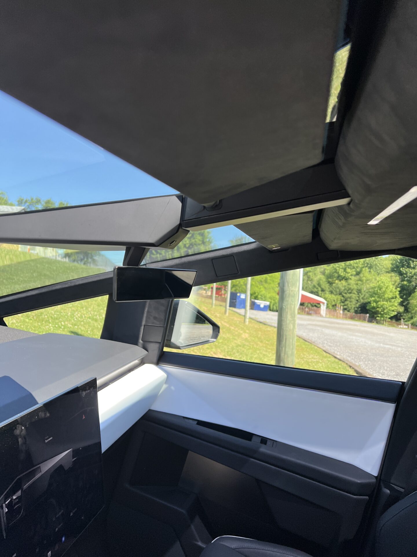 Crew Chief Eric: That’s what they did on the Cybertruck. It’s just a camera. It’s a screen. It’s not a real mirror. So I was like, okay, well, that’s fair because a lot of the ones that we’ve seen don’t have rear view mirrors at all.