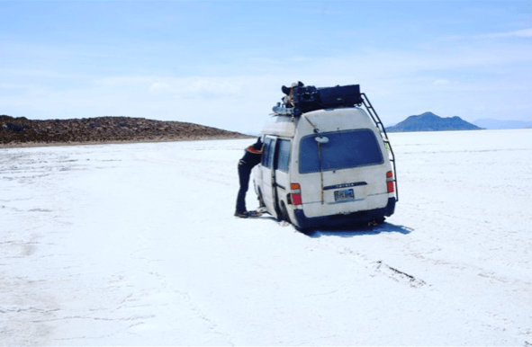Joey Jordan IV: See, no, I didn’t get on a plane. I drove to South America from my house in California. Whoa. In a van that I imported from Japan. I still liked cars. My little breakup from racing didn’t exclude my fandom towards cars, so I chose a specific van from Japan, a Toyota Hiace, four wheel drive, diesel, manual.