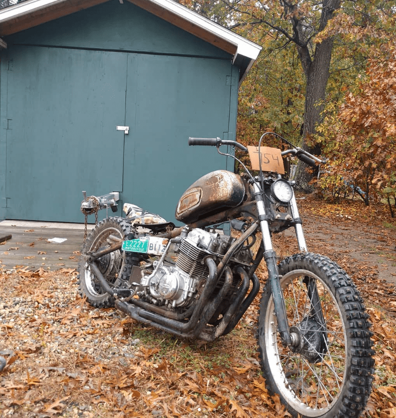 But I wanna say that I’ve always been in a customizing bikes. I got a, I call it a Johnny Cash, you know, pick a year, CB seven 50 Honda Chopper that I built the frame from scratch and that’s changed so many times over the years. And I wrote to Sturgis like three years ago with my buddy. It’s kind of like a hill climb slash like dirt drag bike.