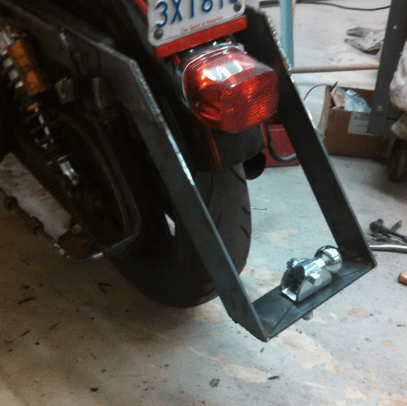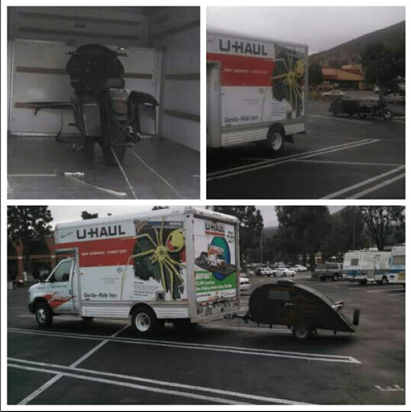 And I made a custom one of those. ’cause all the ones I found online, I didn’t think they were gonna be heavy duty enough. So I’m like, I’ll just build it. I finally get like a prototype going and I take it down the highway and oh my God, this trailer was shaking my bike like crazy. The front end, back and forth, the whole thing.