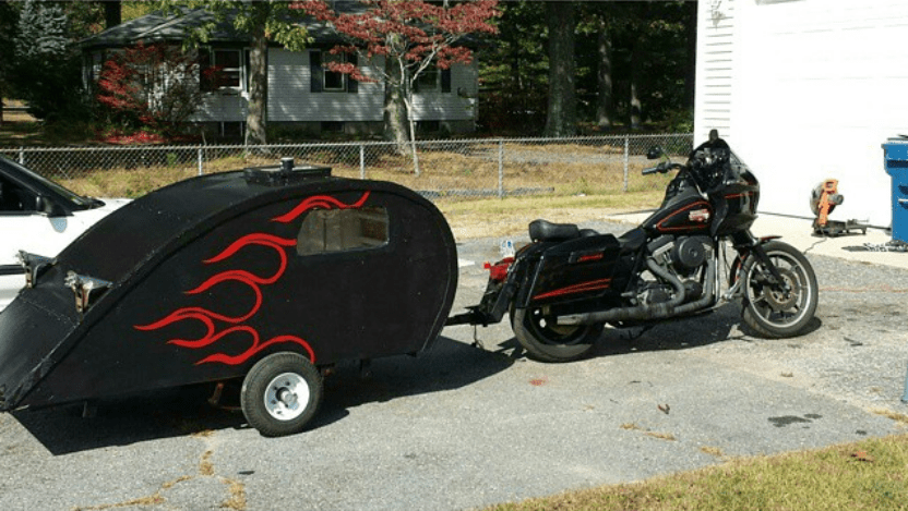 But then my, my buddies is like, Hey, you should build a teardrop trailer and pull behind your motorcycle. Those look sweet. And I started looking into ’em like, oh, those are cool. I could literally just build something that I could sleep in and carry all my gear and tools, which were like my biggest concern because I was on an 89 F X R Harley.