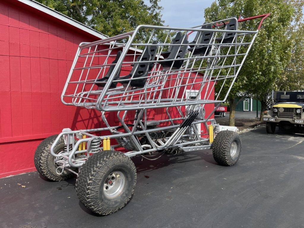 There’s a new exhibit. We’re tearing something out, we’re adding something. We bought a monster truck. We’re building this snowcat. And you can see this thing is, oh, that’s cool. A two story shopping cart I’ll show you. It’s a hot rod, so it’s just this giant two story shopping cart. You sit way up on this perch drive stick shift, and it’s got pipes and it’s a full-blown hot rod with these fat tires.