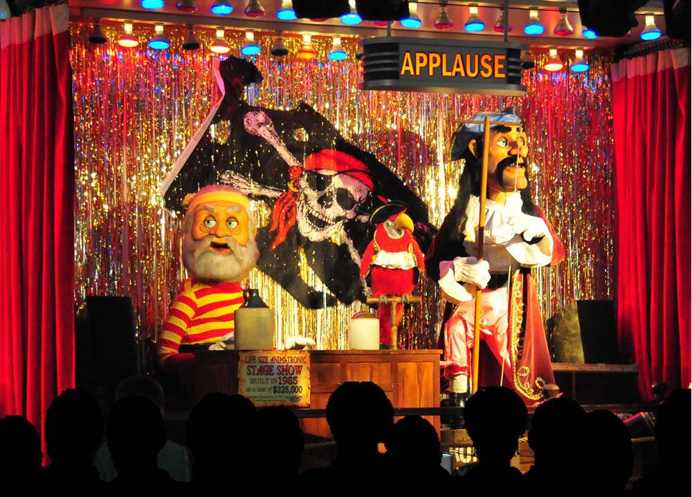 Need a break from all the walking? Try out their full scale indoor carrousel or take in a completely animatronic Pirate concert!