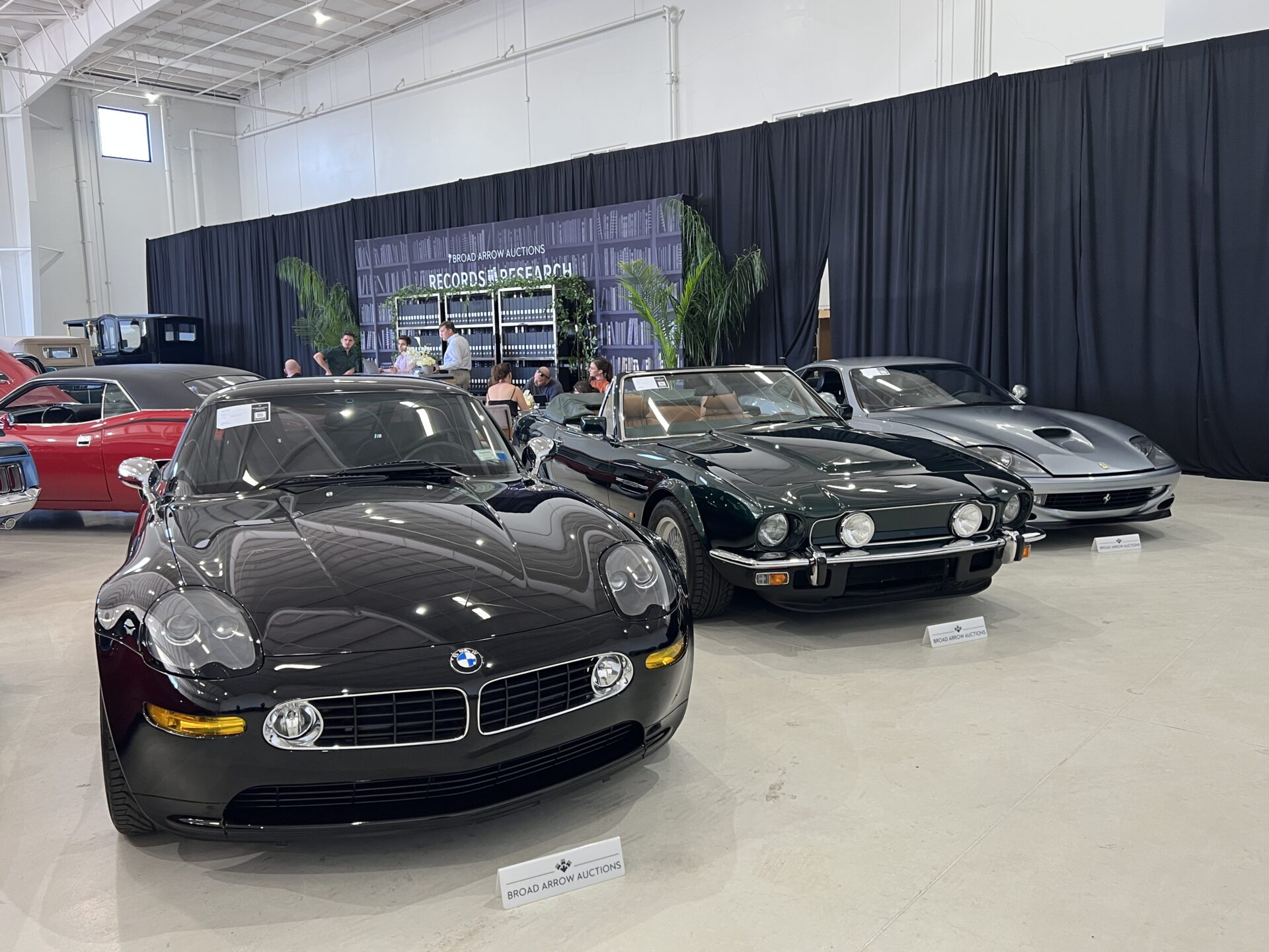 The team at Broad Arrow did a wonderful job utilizing the Jet Center’s buildings and planes to create the illusion of being behind the scenes of one of your favorite cop dramas or spy movies of the time. All of the prompts and arrangements made you feel as if you were amidst the backdrop of iconic soundstages and vintage architecture. And with so many people in attendance previewing vehicles on sale this week, the facility was brimming with energy, anticipation, and beautiful cars.