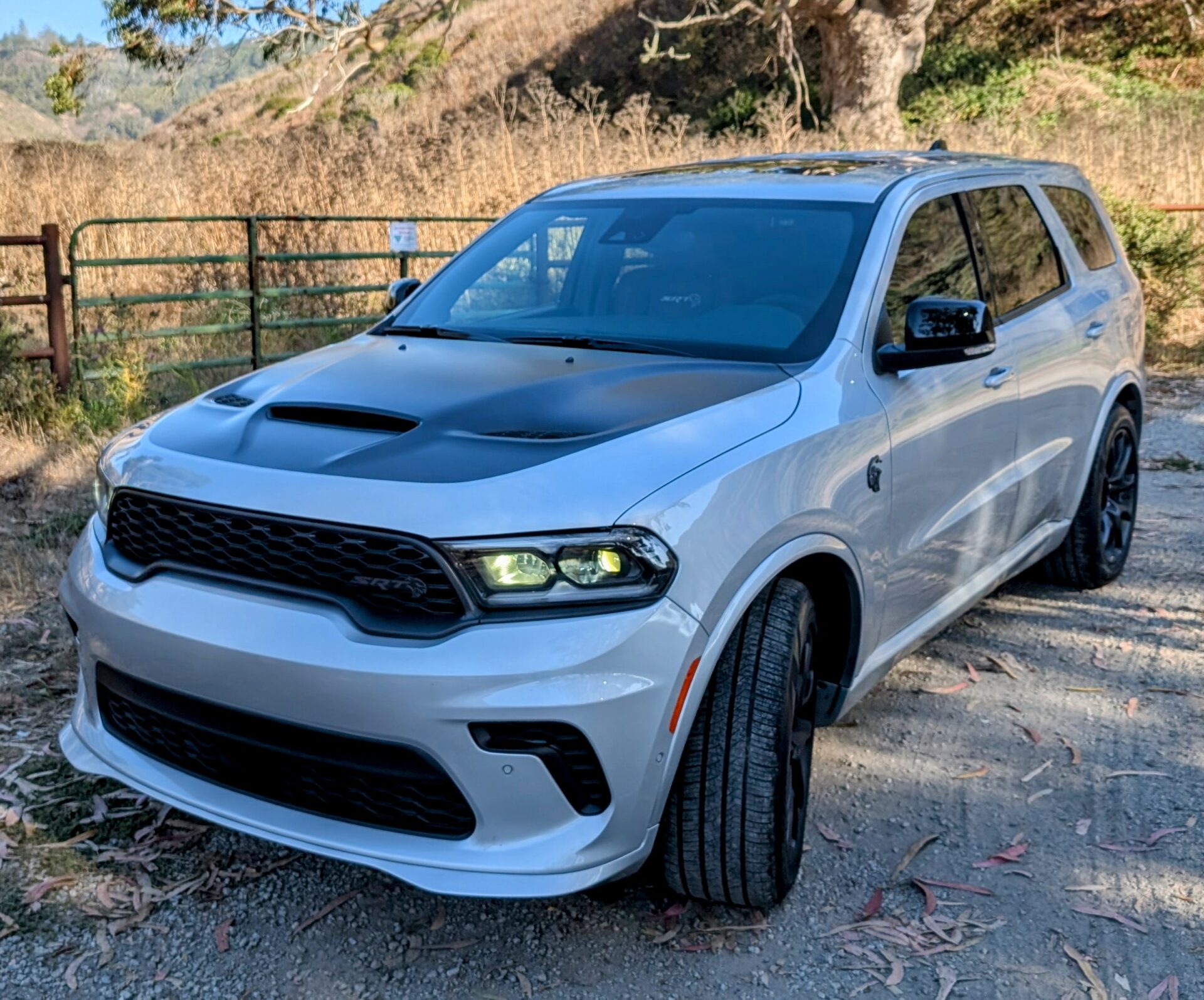To the Dodge Durango Hellcat. I think it was some silver bullet last call. Get a gas guzzling V8 while you can kind of special edition. Silver matte black hood really looked good. This is a three row SUV with a 707 horsepower supercharged V8. Nice bull’s blood leather. Interior in it that actually was kind of nicer than the rest of the interior.