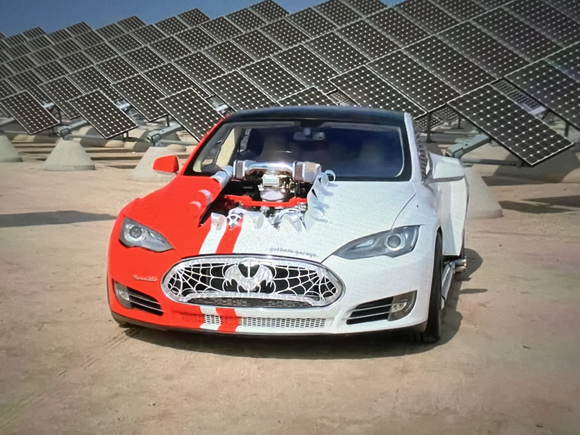 As you can imagine, the drag race went as expected with the help of the “go-baby-go” button affixed to the Barracuda. This opened the door for the team to customize a Tesla Model S for a customer who was interested in doing what people might consider “the unspeakable:” converting it from an EV to a 383-stroker V8. The customer claims that, “this is the best of both worlds” and we’re thinking, if they *can* pull this off, you might be able to have your cake AND eat it, too.