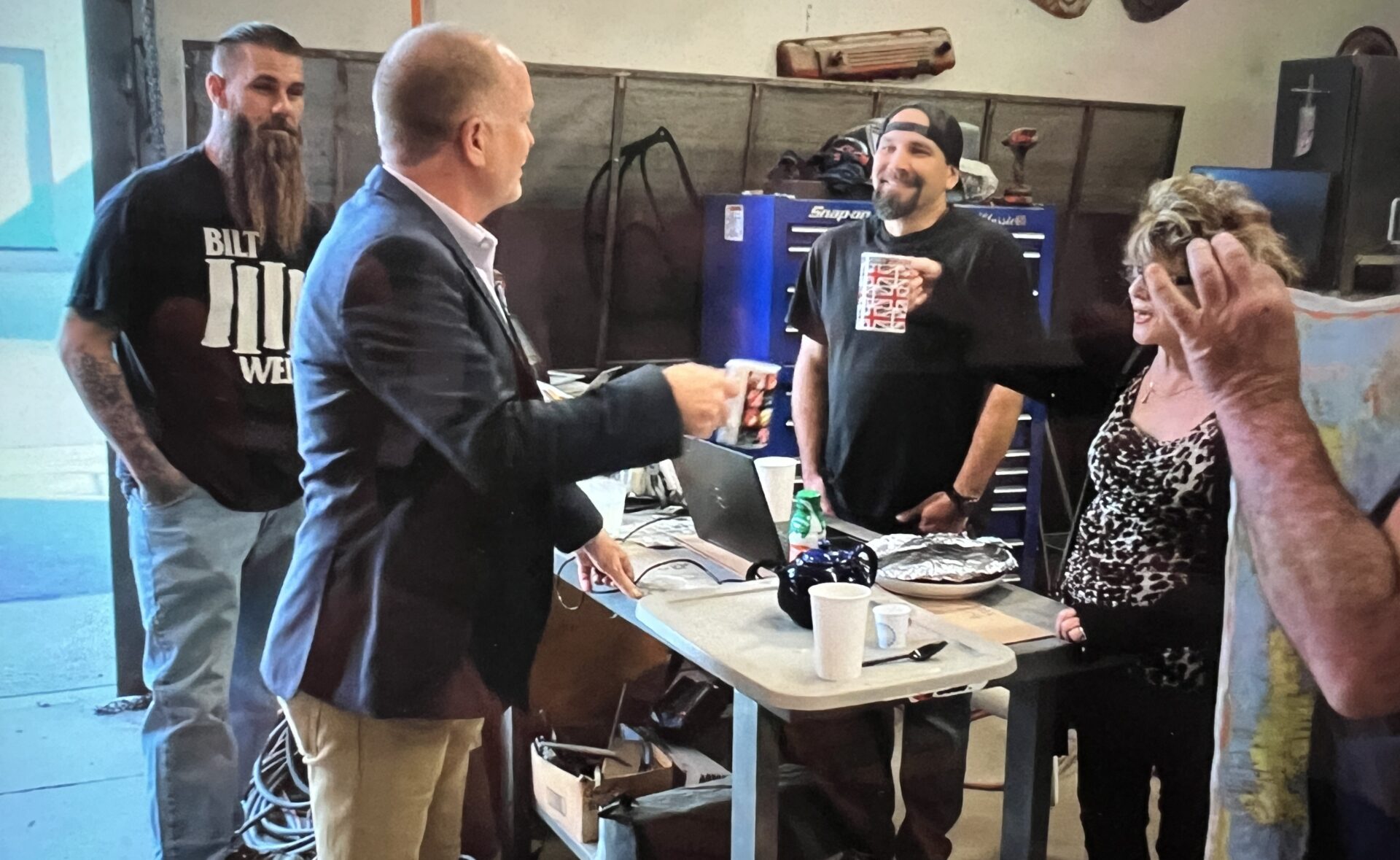 During the bike build, we also got a “meeting with mom,” where Caveman’s mother Saundra stops by the shop for a “spot of tea” with fellow Brit Nick. She’s always a delight, and we enjoy it whenever she can drop in and check on her son during the season, while bringing the team some “biscuits and lemonade.”
