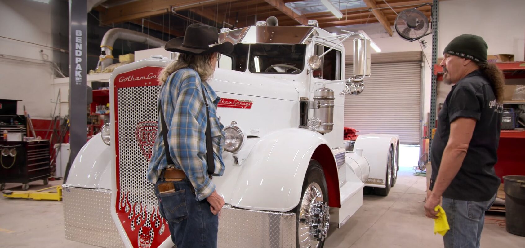 Turns out that the ’57 Kenworth that we haven’t seen since Season 4 has been locked up in storage in yet another Gotham Garage facility and Mark has been “secretly” working on it in his spare time. The plan for this semi-truck has been uncertain since the day he acquired it, outside of the notion that he wants to pay tribute to his father (seen above) and his trucking days. We always enjoy the moments when family has been brought onto the set (ie: Caveman’s Mom), it humanizes an otherwise standard RUSToration formula.