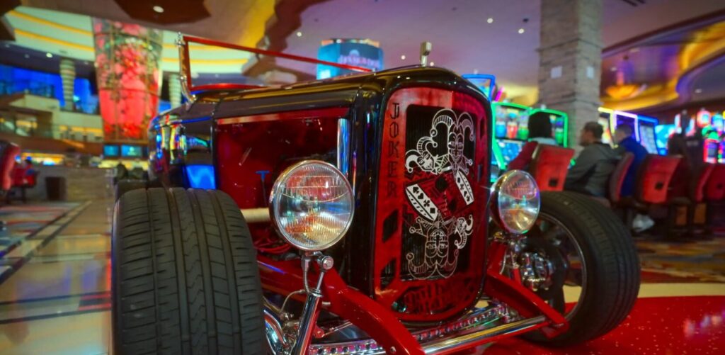 Meanwhile, the team was given a ’32 Ford Roadster rolling chassis that was ready for modification and final paint. This second build carries a $75k budget and will be a promotional/giveaway car for Pechanga Resort Casino.