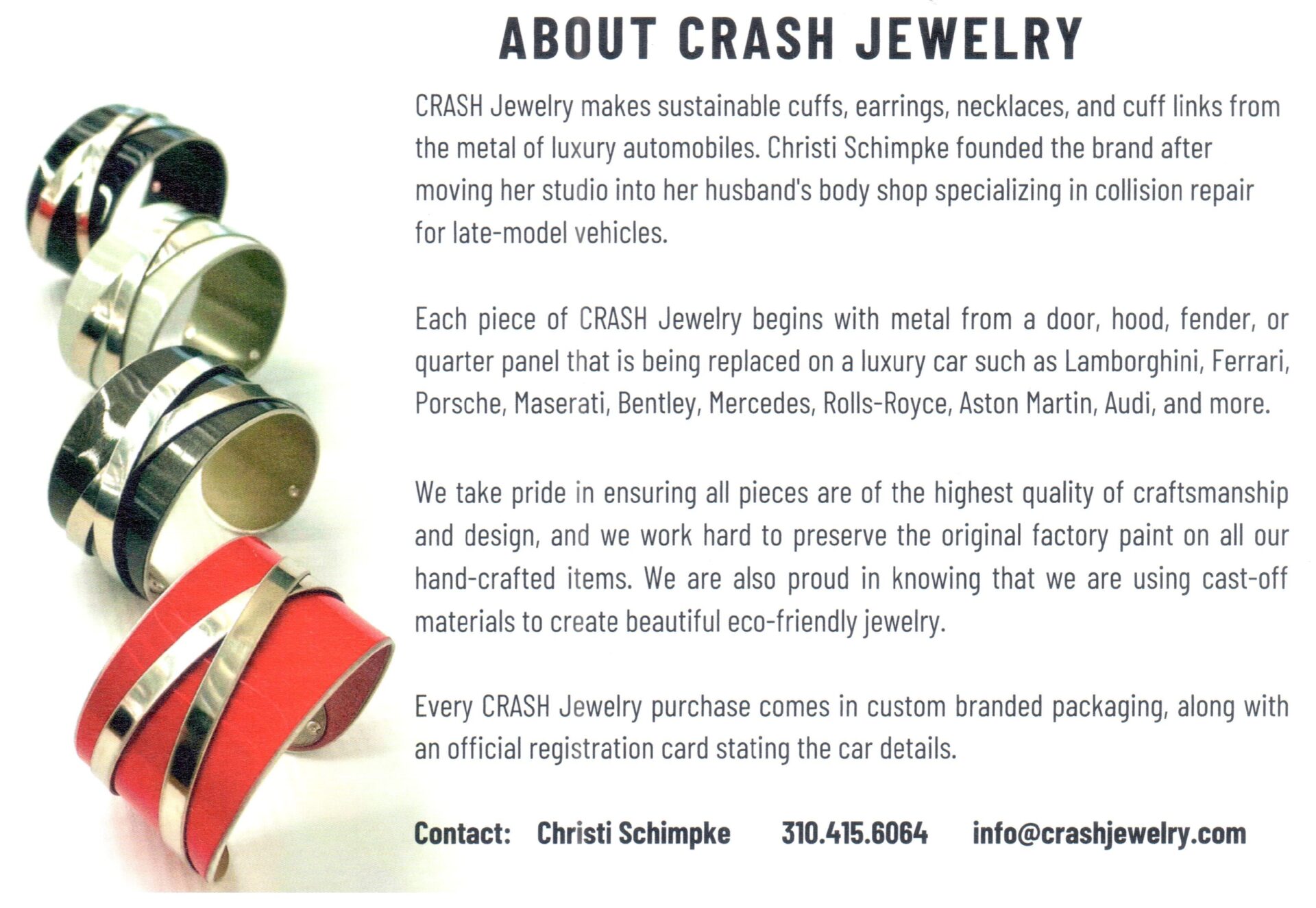CRASH Jewelry makes sustainable uni-sex jewelry from the metal of luxury automobiles. We source metal from Porsche, Maserati, Mercedes-Benz, Lamborghini, Audi, Bentley, and more.