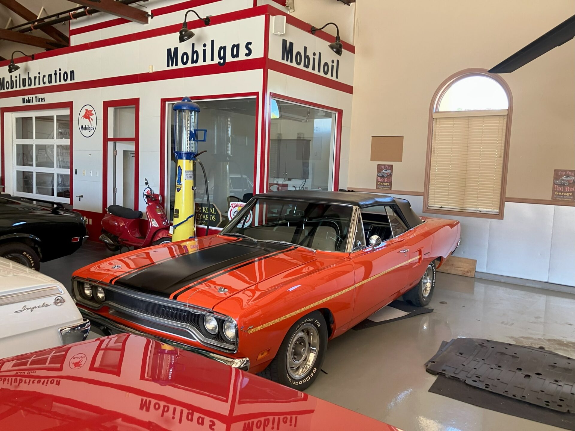 His automotive menagerie reads like a greatest hits of American muscle and European precision: a ’47 Federal flatbed, a pair of ’55 and ’56 Bel Airs, multiple ’62 Impalas, Ford Galaxies the size of aircraft carriers, and a trio of 1970 muscle cars – a Dodge Challenger convertible and two Plymouth Road Runner convertibles in orange and blue. It’s a shrine to Detroit’s horsepower craze and optimism.