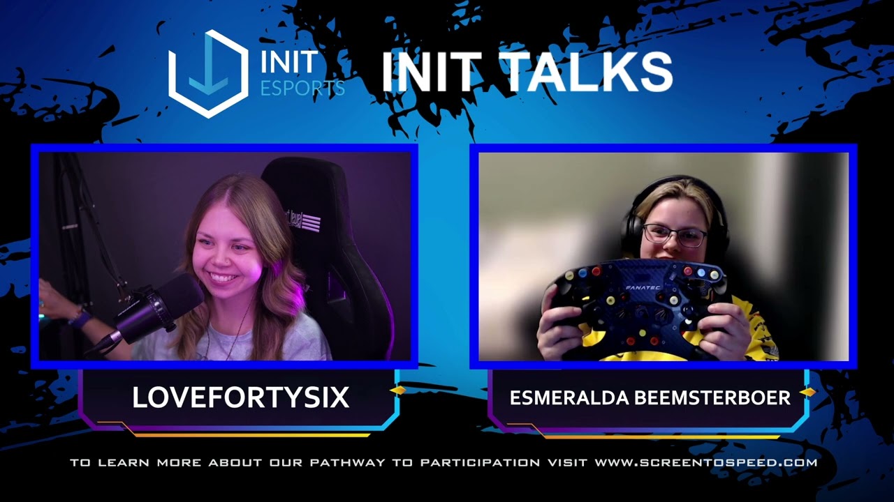 In Episode 27 of INIT Talks, host Lyubov Ozeretskovskaya (aka LoveFortySix) welcomes Esmeralda Beemsterboer (@esmeraldabeemsterboer), a talented sim racer who has made waves in the competitive racing world. Esmeralda shares her exciting journey, from competing in the Screen to Speed Las Vegas event to achieving a podium finish—third place—at the Screen to Speed competition at the ADAC SimRacing Expo.