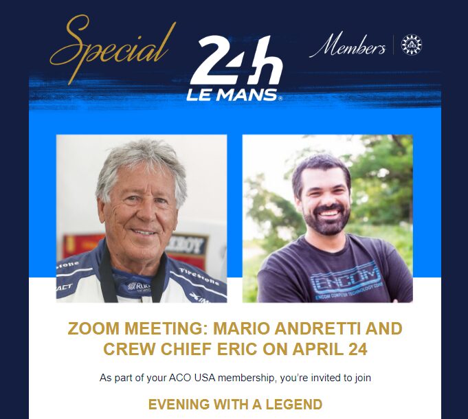 To learn more about or to become a member of the ACO USA, look no further than www.lemans.org, Click on English in the upper right corner and then click on the ACO members tab for Club Offers. Once you become a Member you can follow all the action on the Facebook group ACOUSAMembersClub; and become part of the Legend with future Evening With A Legend meet ups.