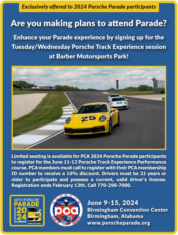 Porsche Parade 2024 – Birmingham, Alabama – PHASE 1 Registration