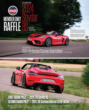 Enter the Fall 2023 Member Raffle for a chance to win a Porsche 718 Spyder RS!