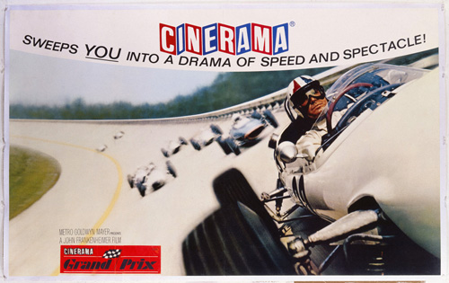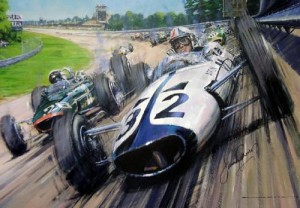It seems that film makers need to decide if they are out to make a film about cars and racing, or a film with some appeal for non-car people. In his attempt to compromise, Frankenheimer fails on the human interest side. It is interesting to note that Steve McQueen was Frankenheimer’s first choice to be Pete Aron. However, negotiations fell through and McQueen set out on the road to make Le Mans. More even than Grand Prix, the character elements of Le Mans fail, and indeed the producer left during filming because no script could be agreed upon, and by implication he had despaired of being able to make the film commercial – that is to say approachable for non-car people. Having said this, Grand Prix benefits enormously from Hollywood’s glossy high production values; the art work of Campari and Roger Stoddard are Michael Turner originals and the film won three Oscars, one for cinematography. The opening sequence, by Saul Bass received particular acclaim: