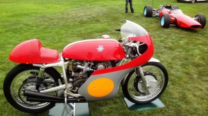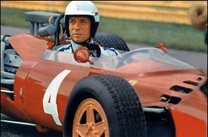 One of the best facets of Grand Prix is the clip above – the coverage of the Belgian Grand Prix at Spa. It was a wet race – a theme at Spa. The other theme at Spa is fast, sweeping corners – the average lap speed was more than 140 mph in 1966, this on closed public roads, at one point featuring a flat out left right kink between two dry stone walls – a small farm, in fact. Using then cutting edge film techniques – helicopters, camera cars moving at racing speed – Frankenheimer captured and wove into his film a race which developed into a terrific duel between emerging talent Jochen Rindt, and Ferrari’s John Surtees. Surtees, the eventual winner, sticks in the mind today because he is famously the only man ever to be World Champion in a car and on a bike. When I saw his car at Pebble Beach last year, alongside his MV Agusta Grand Prix bike, I was thinking of Frankenheimer’s film, and moreover the Spa coverage – that is to say, more than forty years on this remains some of the most compelling and memorable motor racing porn you will ever see.