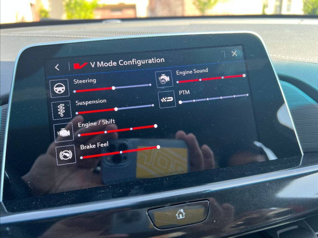 The front seats are truly driver seats in this V. You’ll sit down pretty low, so some will need to max out the vertical adjustment. And these are truly buckets – almost Recaro race seats in style and form. I’m 6’ 1” with a long torso and could find the perfect fit for cruising, and later – performance driving. I asked a friend who is a bigger guy than me, thinking the seat might crimp him a bit, but no – he liked it just as much as I did. What I’ll say is that these seats won’t be for everyone, but they sure are great for what I’m going to do with the V – both interstate and apexes.