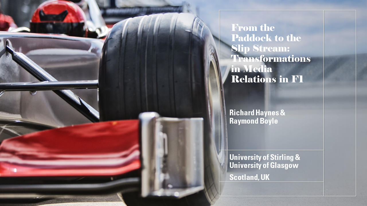 From the paddock to the slipstream, transformations in media relations in Formula 1. By Richard Haynes. Richard Haynes is Professor of Media Sport in the Division of Communications and Media Culture at the University of Stirling in Scotland. He is author of seven books on sport and communications, including the award winning history BBC Sport in Black and White, published by Palgrave in 2016, and his forthcoming book with Raymond Boyle, Streaming the Formula One Rivalry, Sport and the Media in the Platform Age, to be published by Peter Lang in 2024.