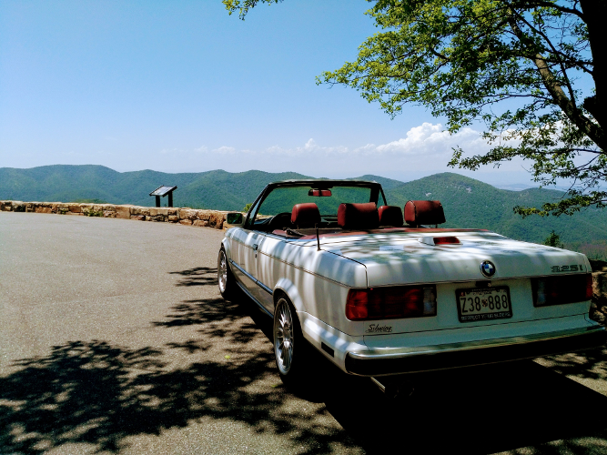 Because The Vintage is about vintage BMW’s, we would be driving the e30 convertible down. Gorgeous weather, sunshine, and amazing views the whole way. We started planning our route and realized it would be quite a bit of driving. It might be a good idea if I practiced driving the e30, on the off chance he needed a break for an hour or two. Plus, it had been a long time since I had driven a stick.