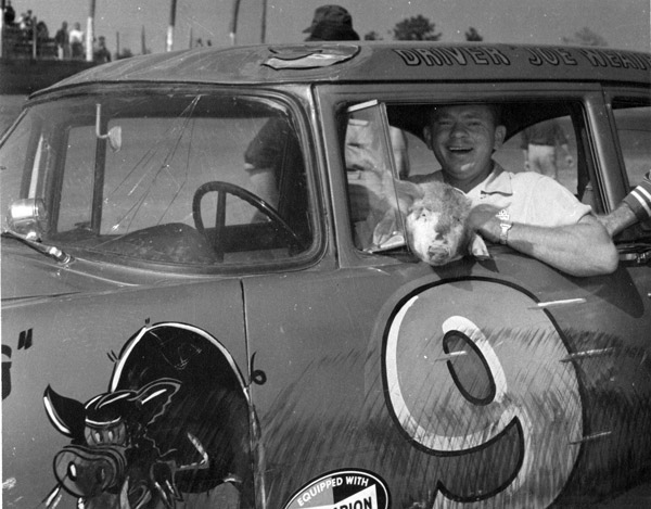 Rarely is reference made to Weatherly without his nickname “The Clown Prince of Racing” being mentioned. Weatherly’s pranks included riding donkeys in race car parades, fooling the unwary with rubber snakes and stealing the ignition keys from all the cars on the grid right before the “Gentlemen Start Your Engines…” command. Like Glen Roberts’ hated “Fireball” moniker, or “King” Richard Petty, the memorable name is part of the journalist or commentator’s story-telling toolkit, even as it cast Joe as a jester next to Turner’s rugged hero. Joe’s estranged wife might also have struggled with seeing the funny side of Joe’s behavior; she married him despite breaking both her legs in the accident which gave him his distinctive facial scar.