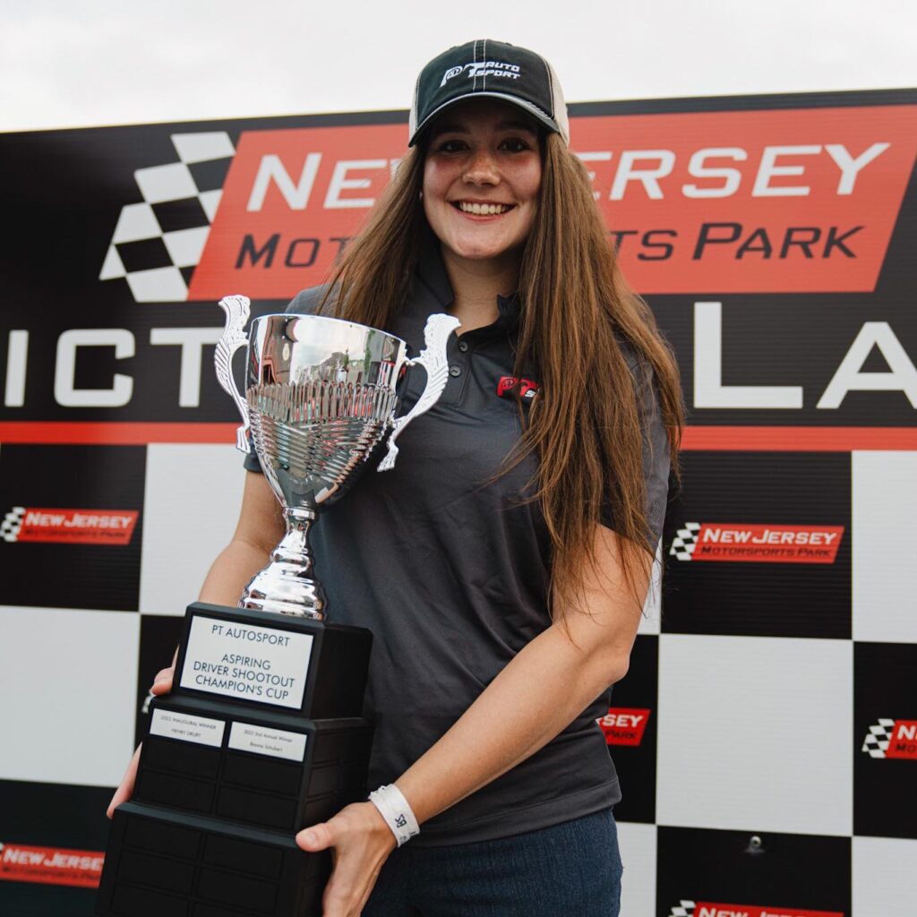 Brenna Schubert: Hopefully. We’ll see. Yeah, I mean, you know, I think like a lot of us. Um, you know, it’s just, obviously it’s, it’s a lot about money these days. Um, not necessarily talent, but that’s why I’m so thankful for the opportunities that I have had. Over the years. Mm-hmm. Um, with the, with all the, the shootouts that I’ve been involved in, you know, the, the pt, auto Sports Shootout, the, um, even the Formula Woman Shootout, the Mazda Shootout, and then the Racing Prodigy Shootout, which ultimately gave me my, you know, my most shot in a professional racing series.