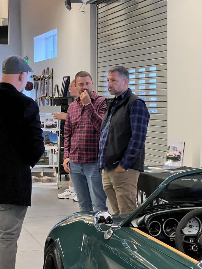 We were invited to join the annual Avants party, held at the octopus muraled building which is home to Steve Kittrell’s Veloce Media. Parties like these are also where you’ll spot celebrities like Matt Farrah (The Smoking Tire; below left) and Jason Camissa (Hagerty; below right).