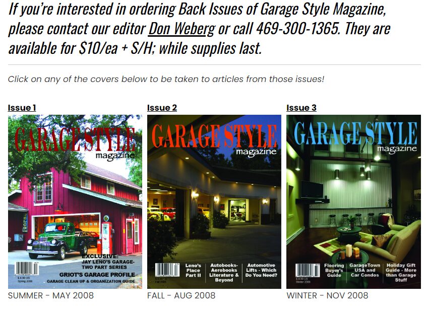 To learn more about the annual publication and its new website, be sure to follow them on social media at Garage Style Magazine or log onto www.garagestylemagazine.com because after all, what doesn’t belong in your garage? Merry Christmas, a filthy animal and a happy new year.