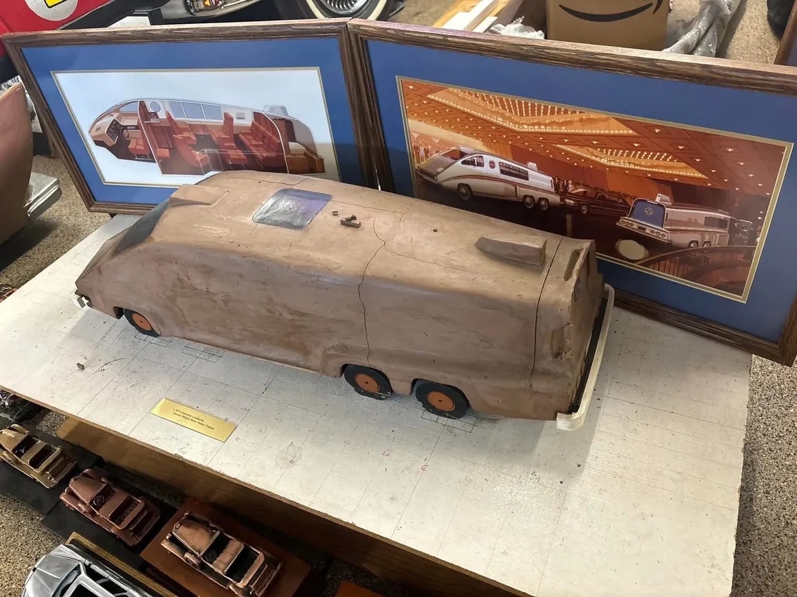So I started looking at it and you know, I said, wow, okay. And then I kept checking back ’cause I was kind of interested. I said, you know, trains, planes, automobiles, right? So kept looking. All of a sudden this auction company pops up with 20 lots of Gordon Buring mobilia, including clay model of a concept.