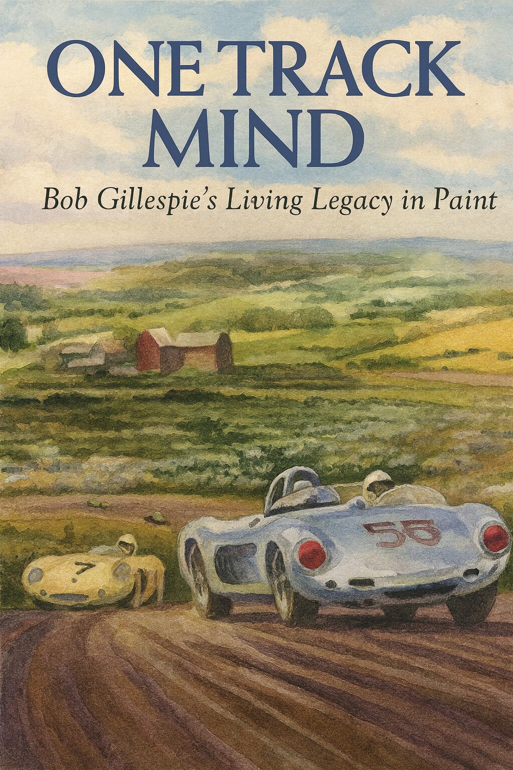 Bob’s self-published book, One Track Mind, is both memoir and gallery. Inspired by mentors who never documented their own journeys, he wanted to preserve his story in his own words. The book blends personal anecdotes, motorsports history, and over 80 paintings, offering readers a visual lap around Watkins Glen across its three generations of track layouts.