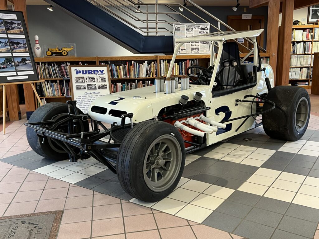 The car was competitive throughout the eras of upright supers, the sleeker, Indy roadster style bodies, and even when rear engine supers were running. The historic Purdy Deuce will be on display at the IMRRC thru our May 11 Center Conversation “Oswego Supers: A Legacy of Speed at The Steel Palace”