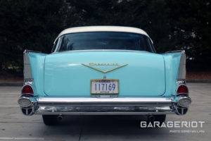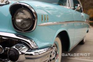 I originally saw this beautiful 1957 Chevrolet Bel Air Sport Coupe at the GarageRiot.com “SummerRiot 2018” event and was struck by the beautiful lark-spur blue color and condition of this car. Ralph McFillen was nice enough to share it with me one late Fall afternoon. That afternoon I took my first ride in a ’57 Chevy and it was definitely memorable.