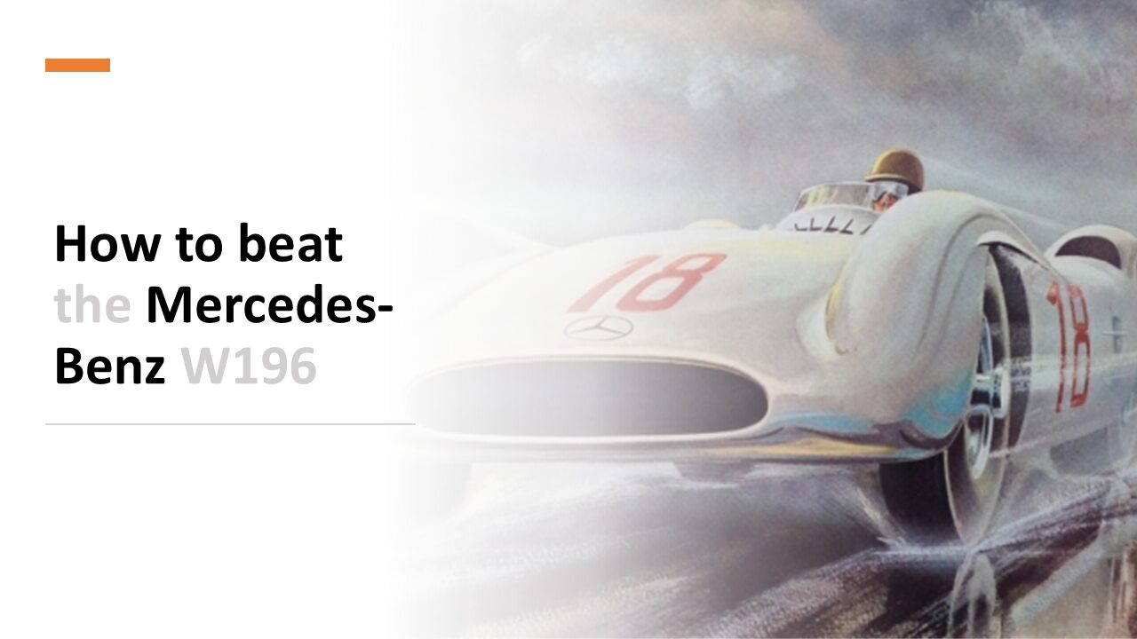 Indeed, new standards were set with a series of W one ninety six variants born out of vast corporate resources supported by components suppliers like Continental Bosch, and so. In this story, the imaginary Italian UNE automobile previously formed of National Legacy Manufacturers [00:01:00] other than Fiat takes on the role of Auto Union Ag of the 1930s as an antagonist of Mercedes-Benz and Promoter of the Midian layout, a probabilistic SWAT analysis reveals what it would take to beat the mighty opponent for s Stuttgart.