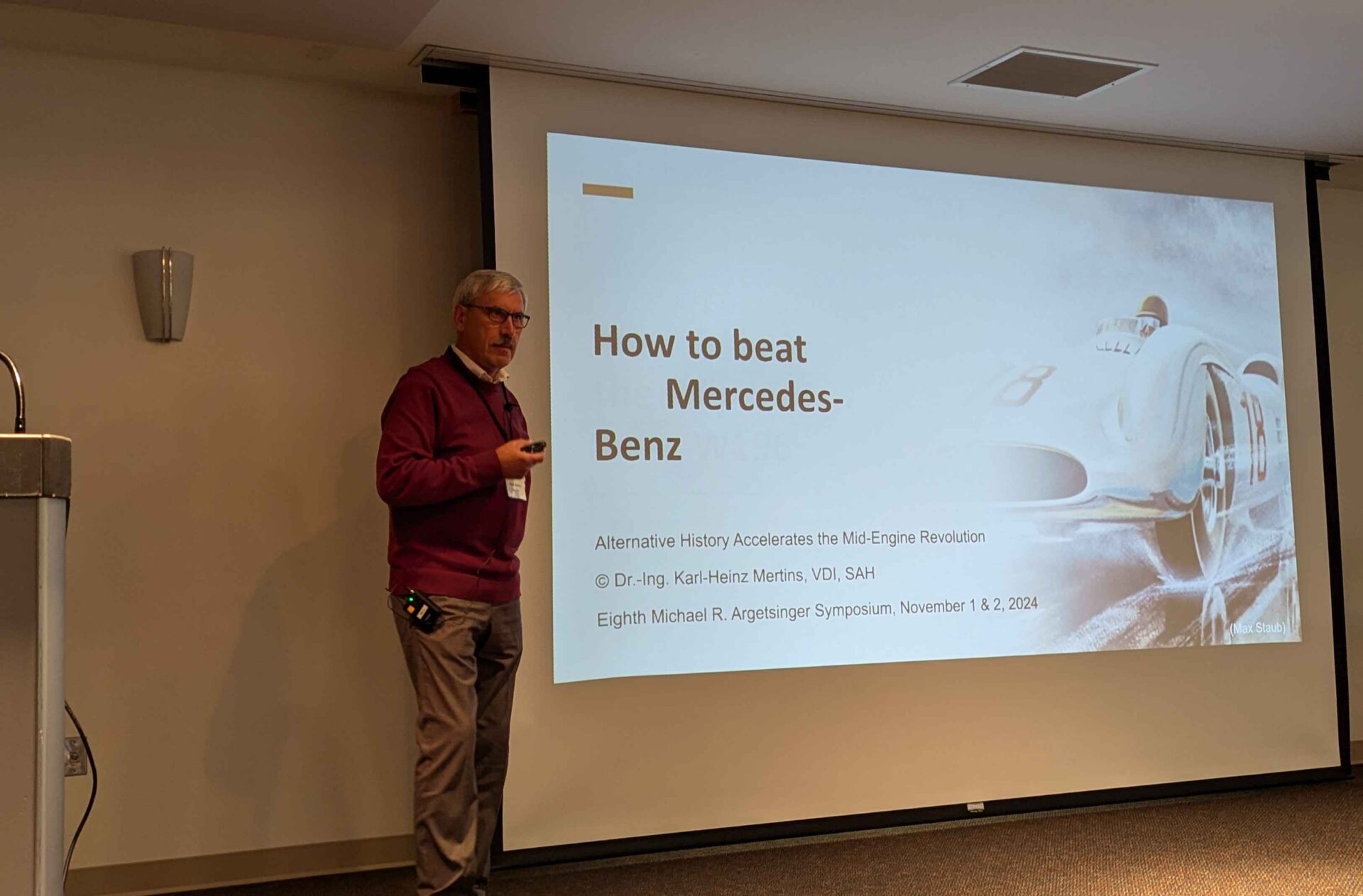 Karl-Heinz Mertins: Like many people in racing, I’m bending the rules a little bit here, speaking to a society of historians. I will talk a little bit about the real history, but then we are often to an alternative history and give a picture of what could have been instead of what was.