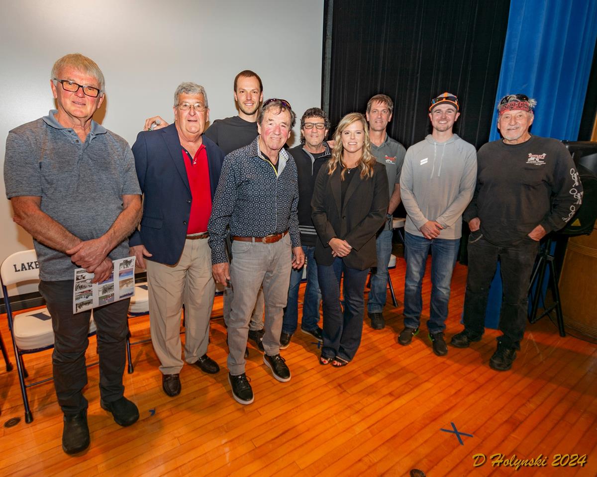 Following his presentation, drivers from Oswego’s over 70 year history were invited on stage. Bentley Warren, Warren Conium, Eddie and Brandon Bellinger, Allison Slode, the only woman to win a super modified feature, nine time champion Otto Siderly, Dave Danzer, and car owner and promoter John Nicotra answered a wide variety of questions posed to them by the voice of Oswego Speedway, Roy Sova.