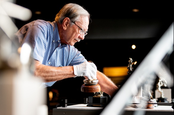 The Revs Institute has long enjoyed a close relationship with renowned mascot collector John Zolomij (seen below), whose extensive holdings include everything from American classics to rare French glass mascots by Lalique, Sabino, and others.