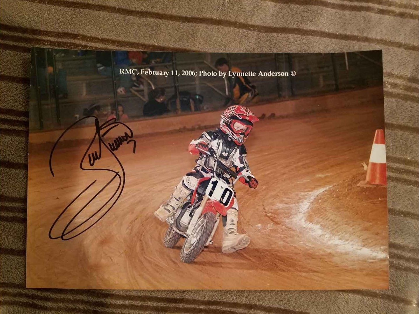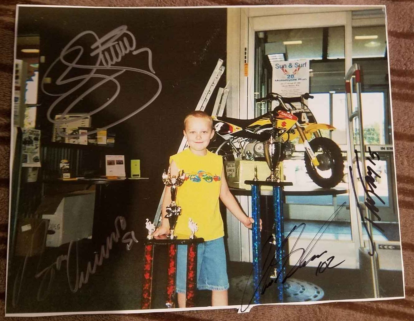 I used to, uh, ride quads and then eventually got into motorcycles. I have some pictures here from when I was younger. [00:06:00] This is young mini Mike, uh, or Mikey, as I used to go by down then, uh, you could see. Flying around on my little 50 scrambler that we modified into an 80 and I raced against the big kids and in 2006 when I was six years old.