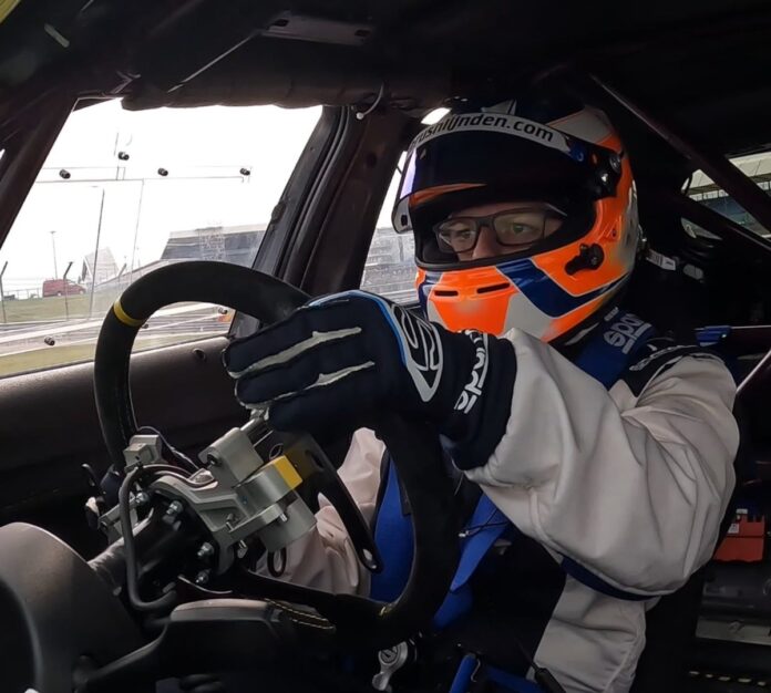 With my laptop, because it still runs iRacing, I was sitting on the desk driving, uh, get off the desk chair, get the wheels off to make sure you don’t slide backwards all the time. And, uh, that’s how I started on iRacing. And then, uh, later on due to sim racing, I got back in the racing car again in England for Team Brits with hand controls.