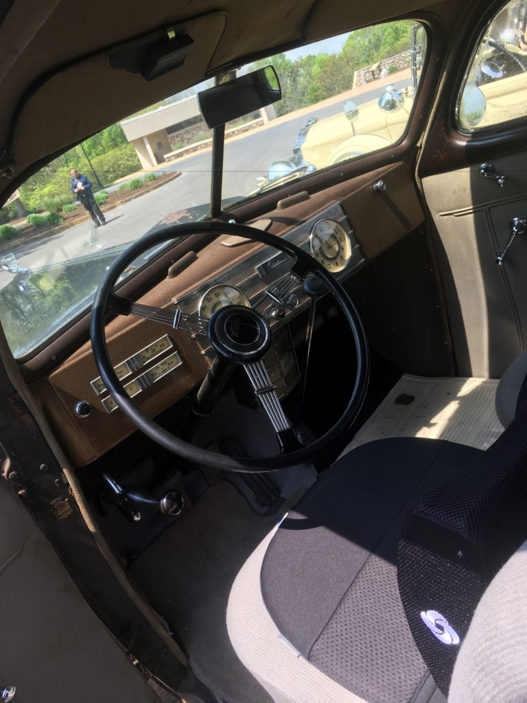 Even though the car is older than many of our parents, it moves effortlessly through traffic. It cruises comfortably at 60 mph – that alone isn’t impressive BUT think about the roads that existed in 1937. The Lincoln Highway, finished around 1938 was NOT a paved highway but rather an amalgamation of roads that provided travelers a roadway to follow rather than a hunt-and-peck method of traveling. That being said, the ride is supple – not pillowy-soft like your Grandfather’s Cadillac from the ’60s and not bone-jarring like an old pickup truck. The brakes are 4-wheel drum, hydraulic, and does require a bit more pressure to stop than the newer cars with ultra-assisted brakes. Keeping these things in mind and doing something that modern drivers don’t do (looking ahead), braking is a non-issue.