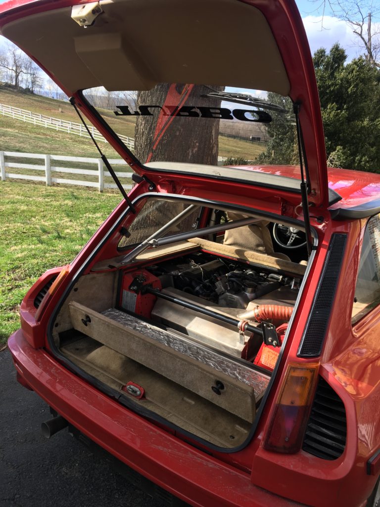 A stock R5 Turbo-2 is powered by a turbocharged 1.4-litre Renault (Cléon-Fonte) 4-cylinder making 158 bhp mated to a 5-speed gearbox with a top speed somewhere shy of 130 mph. Allen’s Turbo-2 has been upgraded to a “Stage 2” package which bumps the horsepower up to a peppy 180 bhp, making it feel like a much larger engine.