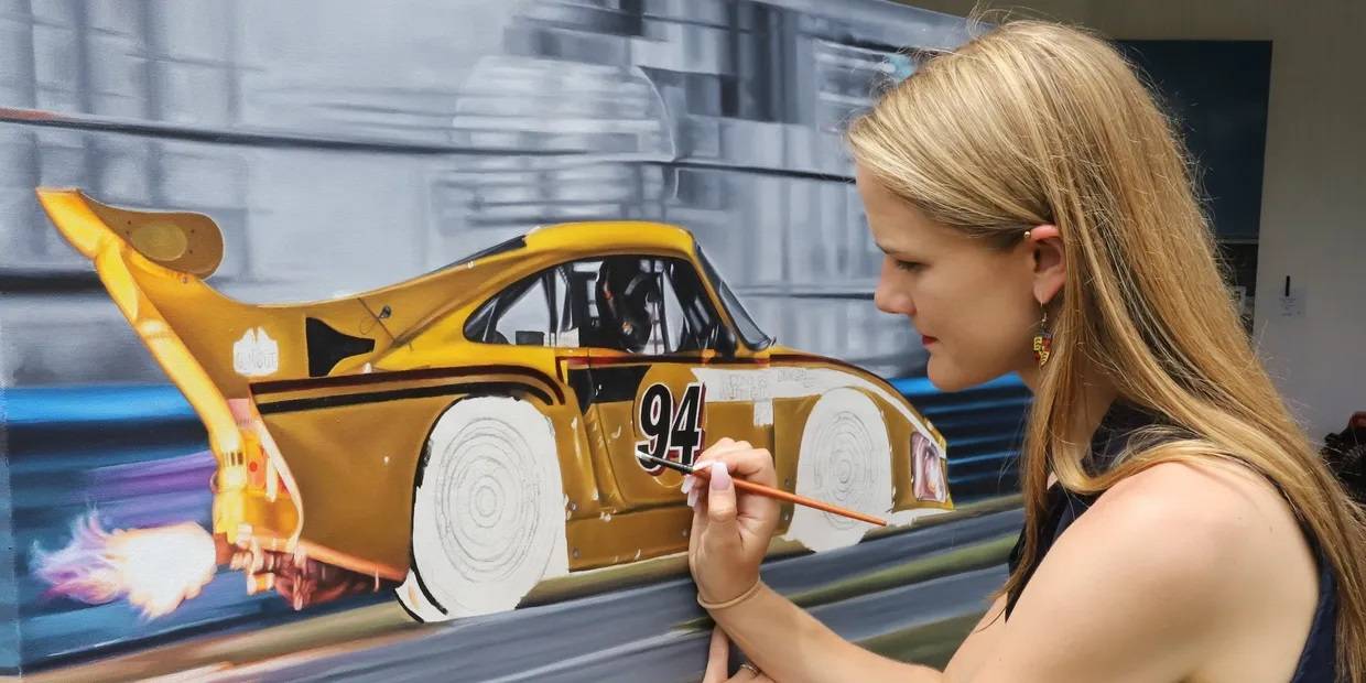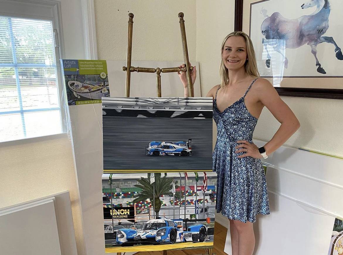 From that moment, her artistic focus shifted. Motorsports became her muse. “There’s nothing like standing trackside, getting your eardrums blasted by RSRs or Corvettes. I wanted to capture that on canvas.”